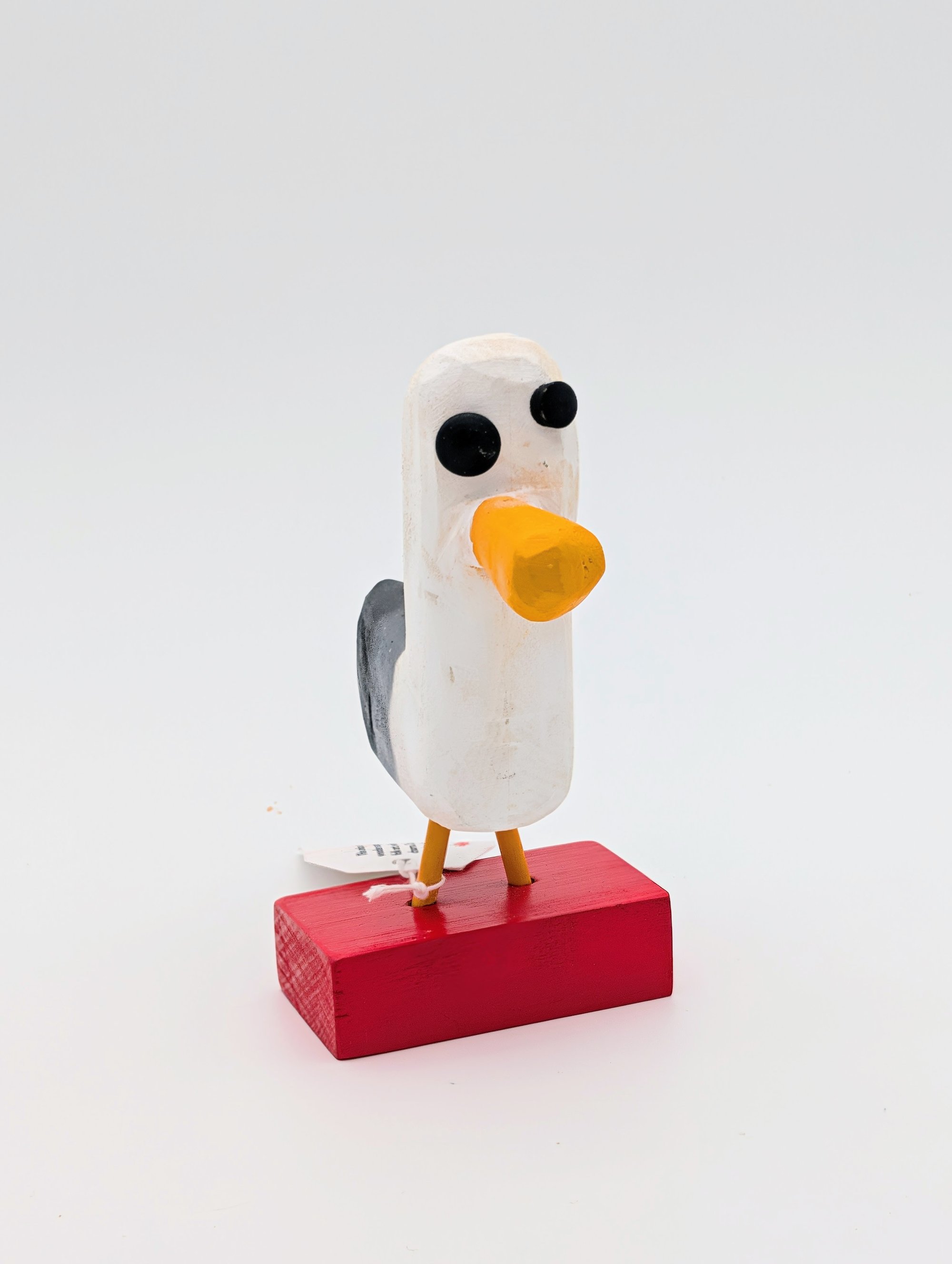 This unique, hand-carved and painted wooden seagull is a one-of-a-king piece of folk art, with its own distinct character and charm. Crafted with care and attention by local Halifax artist Jarrett Sampson.