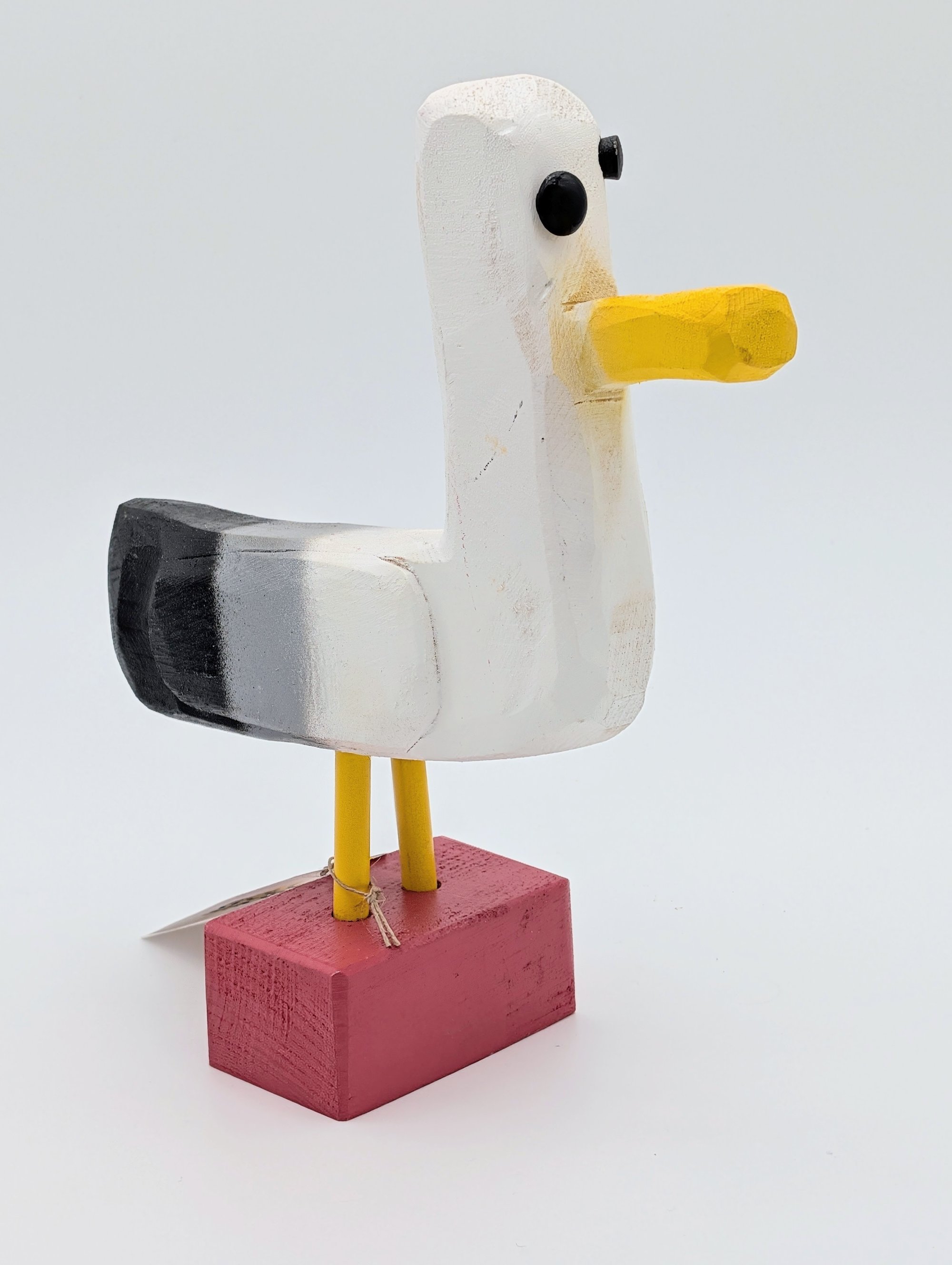This unique, hand-carved and painted wooden seagull is a one-of-a-king piece of folk art, with its own distinct character and charm. Crafted with care and attention by local Halifax artist Jarrett Sampson.