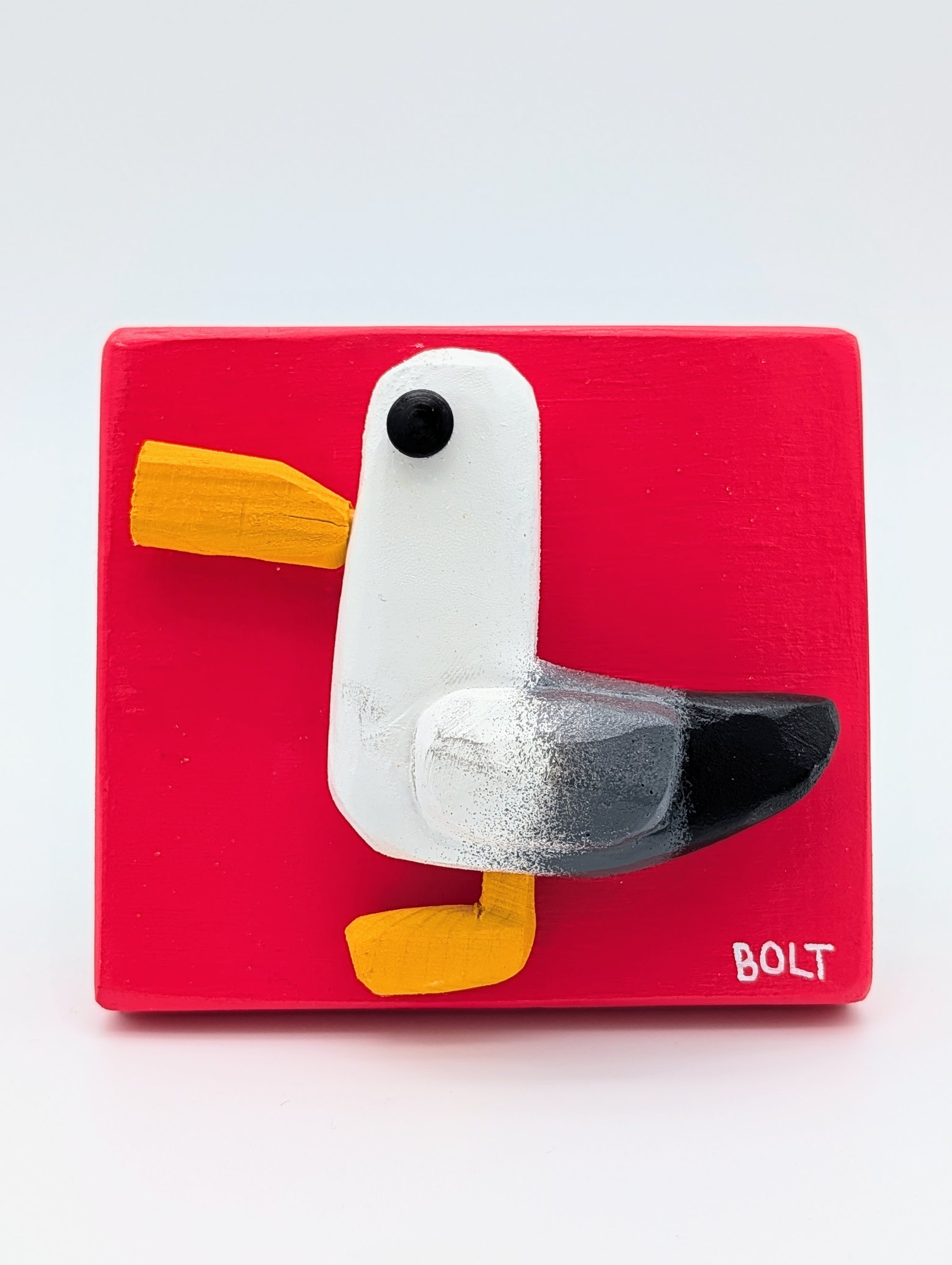 This unique, hand-carved and painted wooden seagull is a one-of-a-king piece of folk art, with its own distinct character and charm. Crafted with care and attention by local Halifax artist Jarrett Sampson.